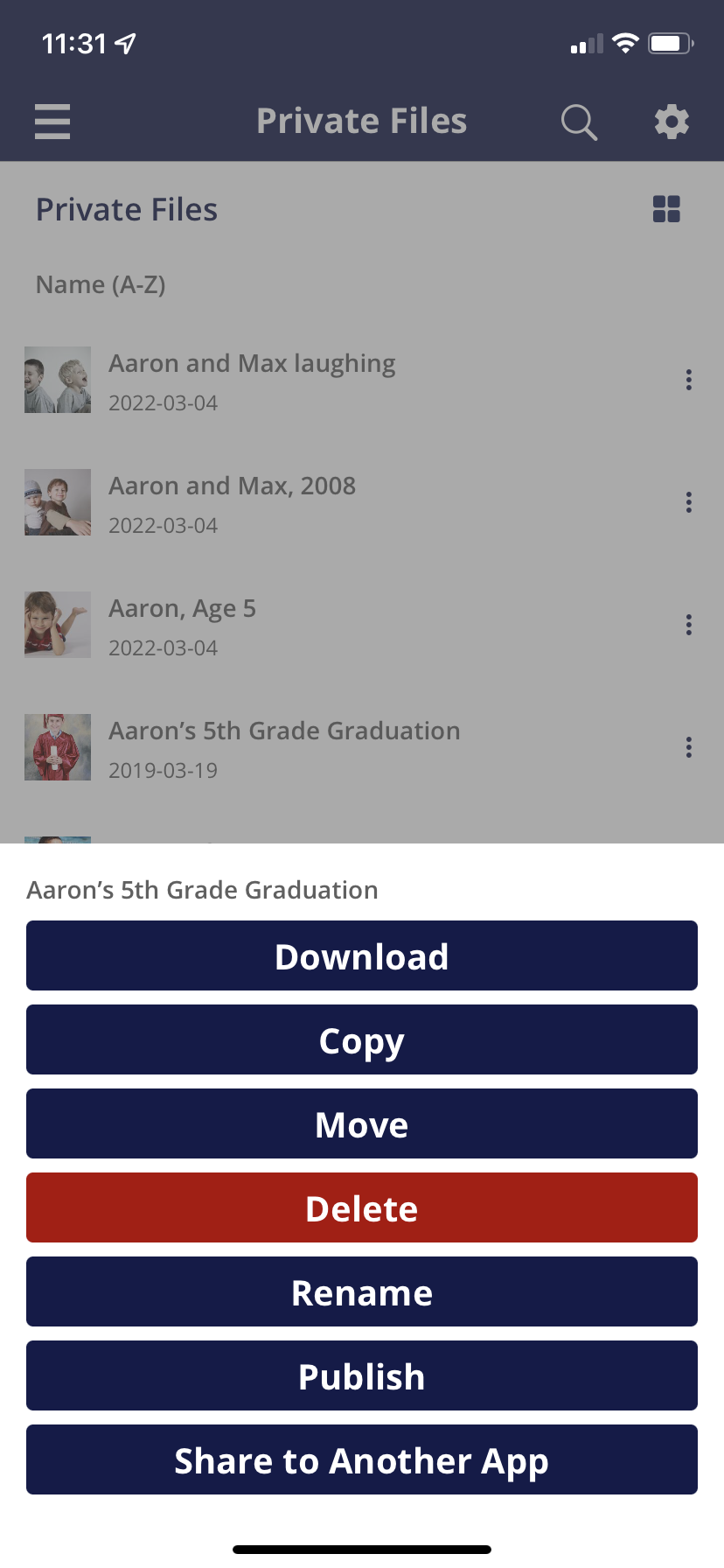 You can download or export files from your Permanent archive to your device using the mobile app to share with family and friends who are not Permanent members using the Share to Another App feature. Choose how you would like to share your memories -- send them via text or email, save them to your device, or post them to social media. Your friends and family members don't need a Permanent account to view them!