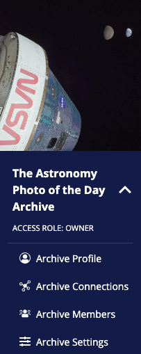 If you aren't sure who the archive payer is for an archive, you can check in your archive settings. Click the drop down next to the archive name. Then, click Archive Settings. In the new window that appears, click Archive Settings. You can see the archive payer listed on this page if there is an archive payer.
