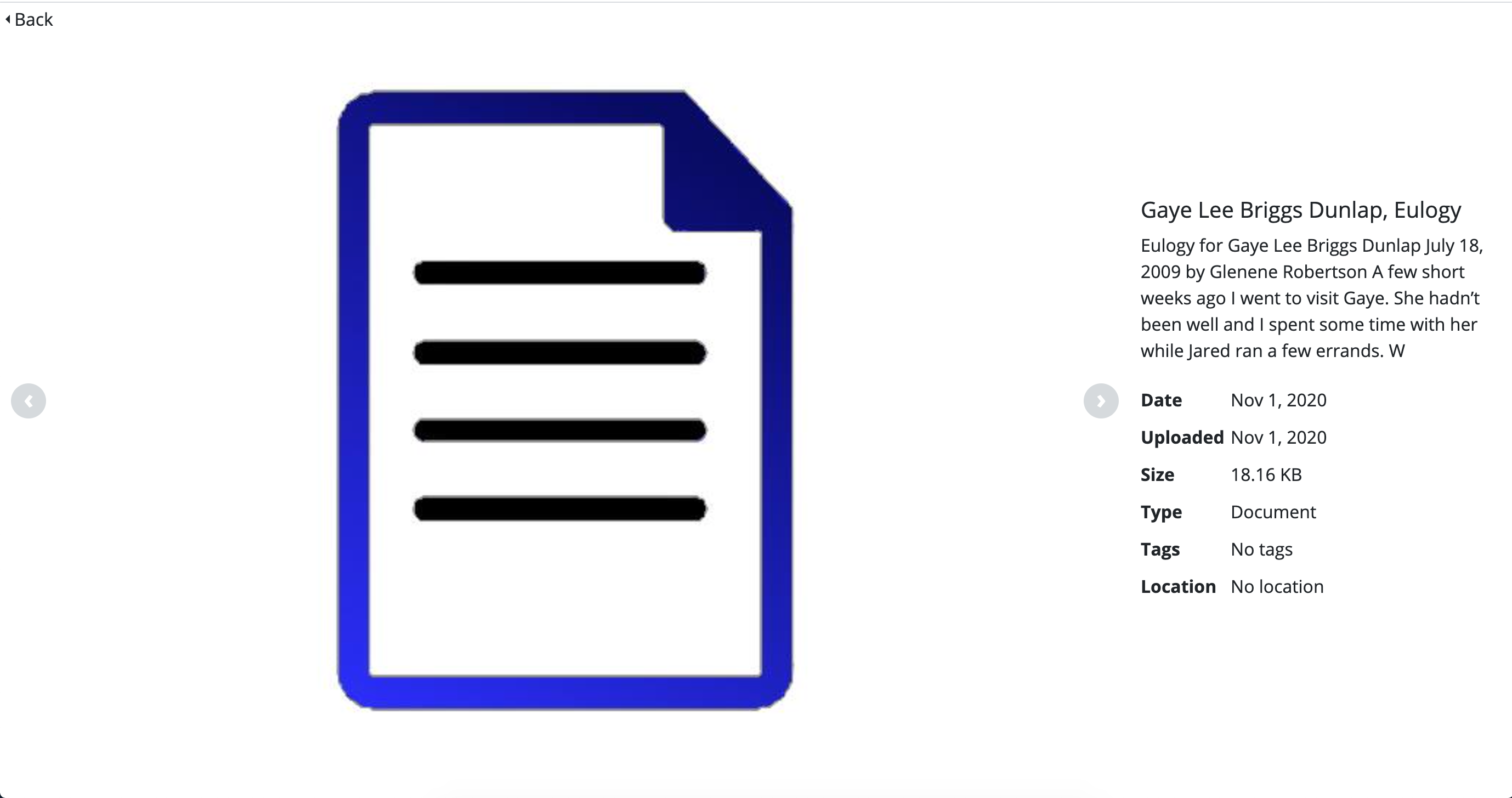 When you select the “Upload” button, any new files from Permanent will be added to the corresponding Person in your Family Tree, as well as any changes to titles or descriptions you made to files in Permanent. It may take a few minutes for us to update your Persons in FamilySearch.
